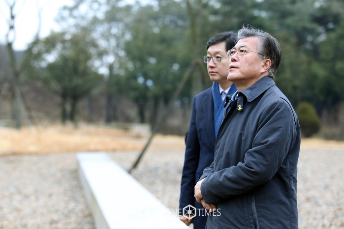 문재인 더불어민주당 전 대표가 29일 오후 설 연휴를 맞아 경남 김해시 봉하마을을 방문해 고 노무현대통령 묘역을 참배하고 있다. 2017.01.29. (사진=문재인 전 대표 측 제공)