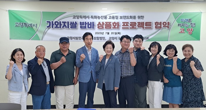 한편 고양시는 특화 농산물인 가와지쌀을 이용한 다양한 고품질 가공 식품 연구를 활발하게 진행하고 있다. 올해 9월에는 엠지(MZ) 세대를 공략한 ‘가와지 캔쌀’과 ‘스틱쌀’ 등 소포장 선물 세트가 출시될 예정이다.