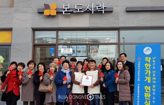 [부자동네타임즈 이소정기자]본도시락 세종시청점(대표 천경하)은 17일 ‘나눔으로 이웃에게 희망을 주는 착한가게’ 현판식을 갖고, 세종사회복지공동모금회와 연계한 보람동 ‘착한가게’에 동참했다.