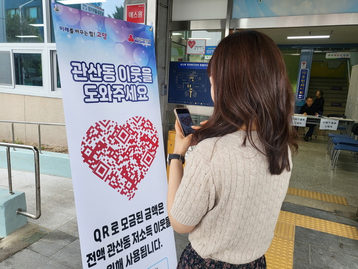 [부자동네타임즈 김인수기자] 고양특례시 관산동 행정복지센터는 지역 주민의 기부 참여를 유도하고 나눔 문화를 확산시키고자 QR코드를 통한 모금을 진행한다고 5일 전했다.