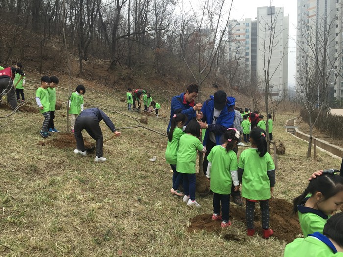 참석자들은 약 1,800㎡ 면적의 대상지에 상수리, 이팝, 산딸, 왕벚나무, 산철쭉 등 총 5종 440주를 심었다.