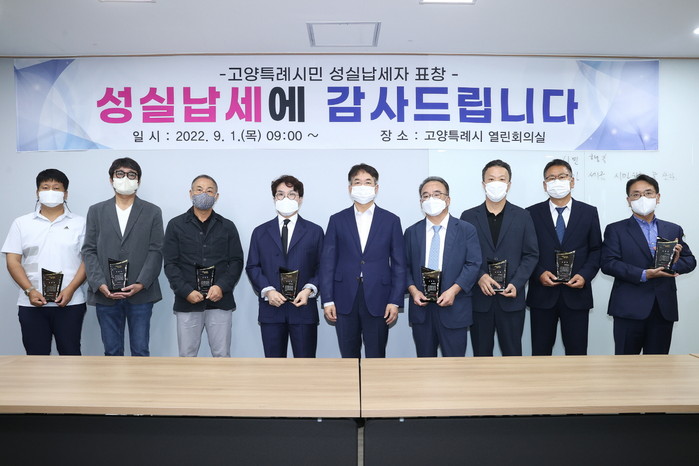 [부자동네타임즈 김인수기자] 고양특례시(시장 이동환)는 지난 1일 지방세를 성실히 납부해 시 재정확충에 기여한 성실납세 유공자를 선정, 표창패를 수여했다고 밝혔다.