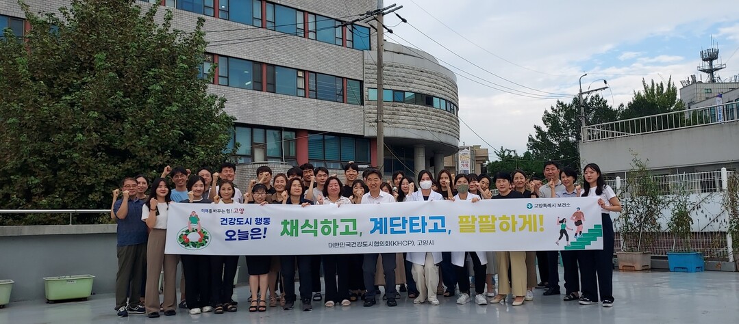 [부자동네타임즈 = 김인수 기자] 지난 5일 지속가능한 ‘건강도시 고양’을 실현하기 위해 건강도시 공동행동 슬로건인 ‘채식하고, 계단타고, 팔팔하게!’ 선포식을 열었다. 이날 선포식에 덕양구보건소장을 비롯한 시 관계자 50여명이 참석했다.