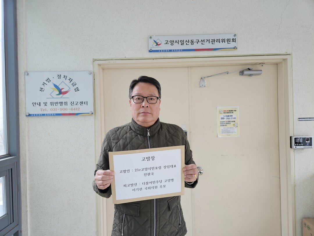 21c고양시민포럼(상임대표 진현국)은 25일 "더불어민주당 고양병 선거구 국회의원 후보가 공직선거법 위반죄로 고발장을 경기도 일산동구 선거관리위원회에 접수했다."고 밝혔다.