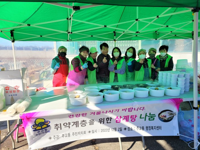 안홍근 주교동장은 “날씨가 추워져서 취약 계층 주민의 어려움이 클 것이라 생각한다. 따뜻한 보양식이 건강한 겨울나기에 도움이 되면 좋겠다. 추운 날씨에도 적극 봉사하신 주민자치회 위원들에게 감사하다.”라고 말했다.