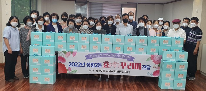 효(孝)꾸러미 나눔행사는 코로나19로 인하여 경로잔치 실시하는데 어려움이 있어 경로잔치 대안사업으로 진행된 사업이다. 이번 행사는 지역사회보장협의체 및 통장협의회 회원들이 효꾸러미를 관내 홀몸어르신 세대에 직접 방문하여 전달하면서 어르신들의 건강과 안부를 확인했다.