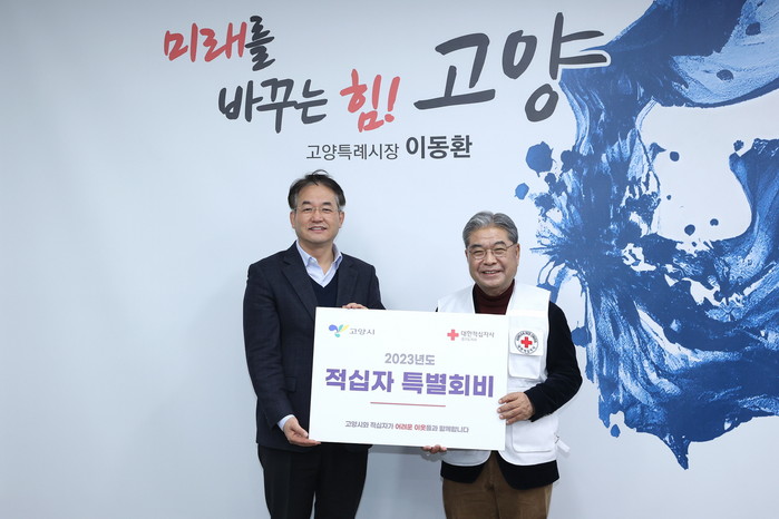 전달식에는 이동환 고양특례시장을 비롯해 이재정 대한적십자사 경기도지사 회장, 성연배 대한적십자사 경기도지사 상임의원, 박진수 대한적십자사봉사회 고양지구협의회 회장, 박노선 고양특례시 자치행정국장 등이 함께했다.