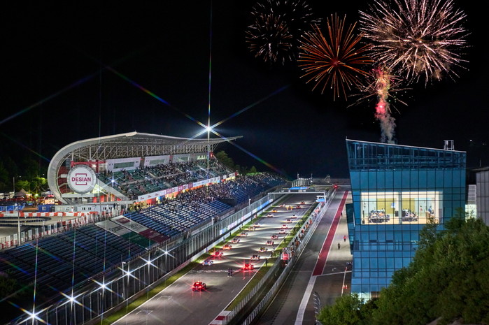 [사진설명] 3라운드 ‘나이트레이스’ 체커기와 동시에 시작된 폭죽이 밤하늘을 수놓고 있다