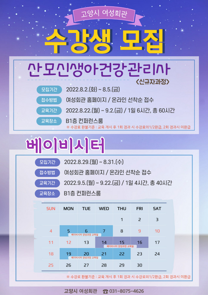 수강생 모집에 대한 자세한 사항은 고양시 여성회관 홈페이지에서 확인할 수 있다.