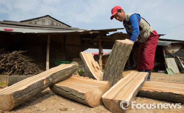 (세종=포커스뉴스) 입동을 이틀 앞둔 6일 세종시 장군면 송학리에서 서동하씨가 장작을 패며 겨울 준비를 하고 있다.