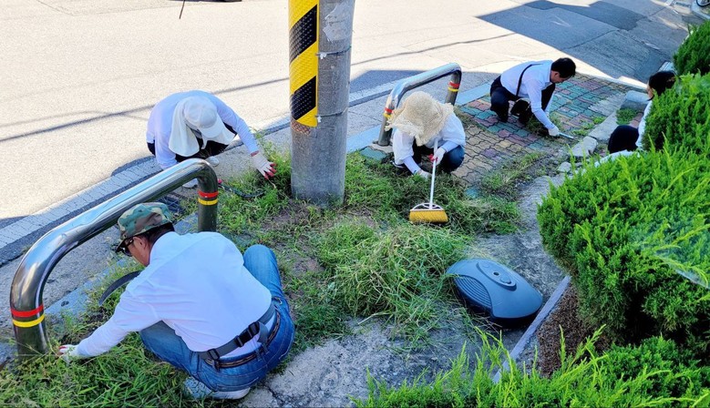 전 세대가 함께한 미산로 제초 봉사, 깨끗한 보행길 조성