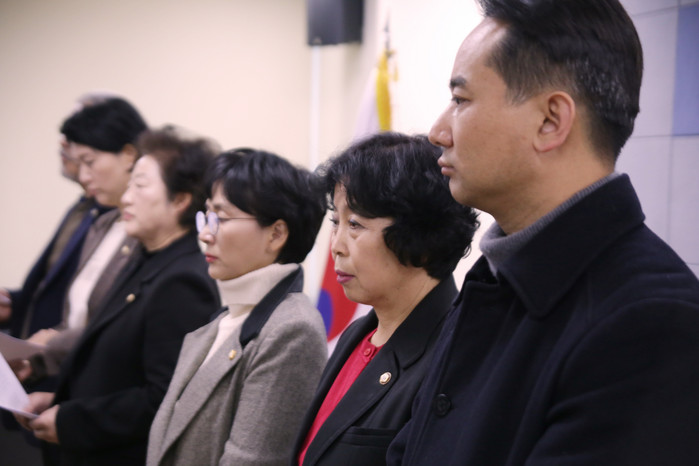 [사진성명] 상임위원장단 성명서 발표에 참석하고 있다.