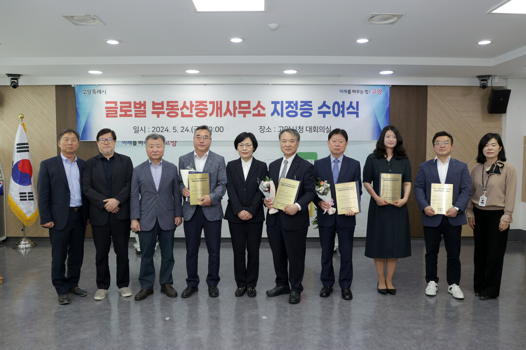 [부자동네타임즈 = 김인수 기자] 고양특례시는 지난 24일 외국기업 또는 주재원들에게 편리한 부동산 서비스를 제공할 수 있는 글로벌 부동산중개사무소를 선정하고 지정증을 수여하는 수여식을 개최했다고 밝혔다.