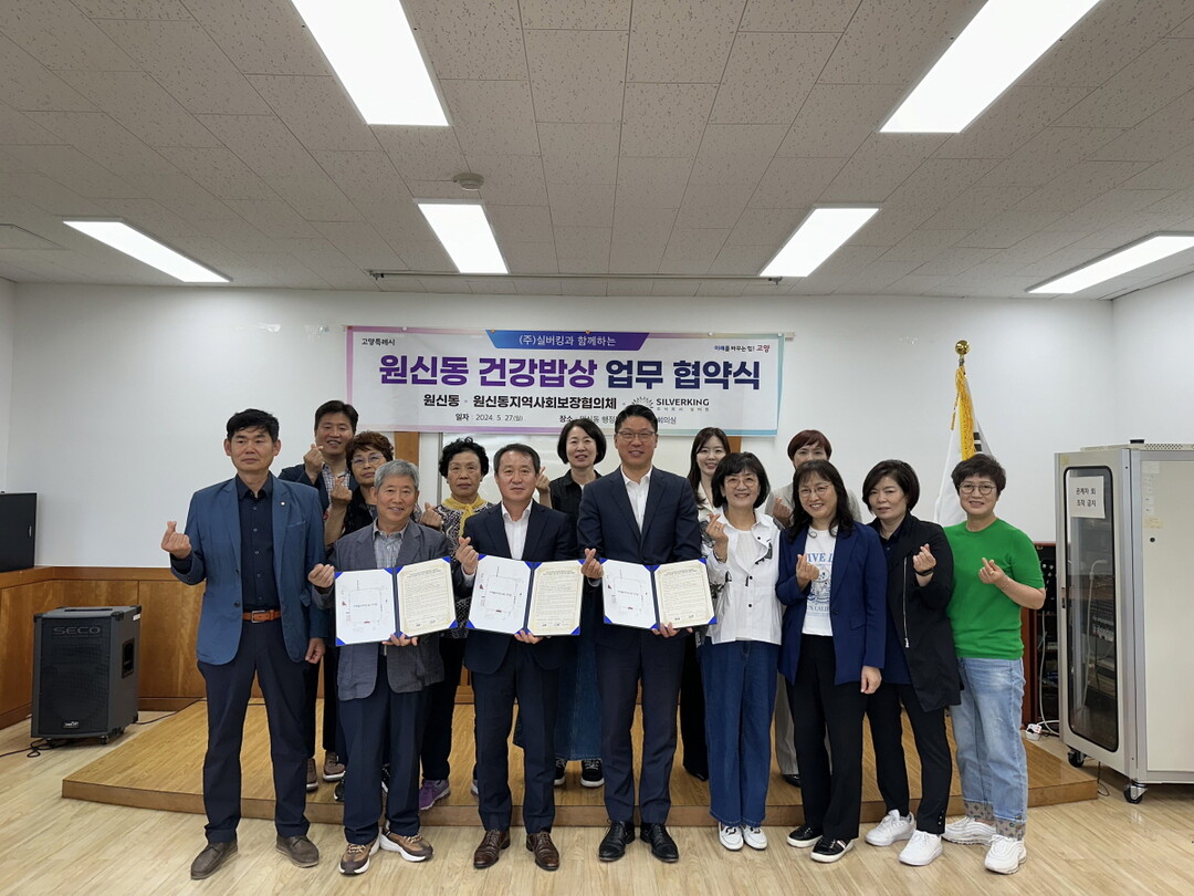 [부자동네타임즈 = 김인수 기자] 고양특례시 덕양구 원신동과 ㈜실버킹은 지난 27일 ‘원신동 건강밥상 지원사업’에 대한 업무협약을 맺고 관내 취약계층 주민에게 건강한 식사를 무료로 제공하기 위해 상호 협력하기로 했다.