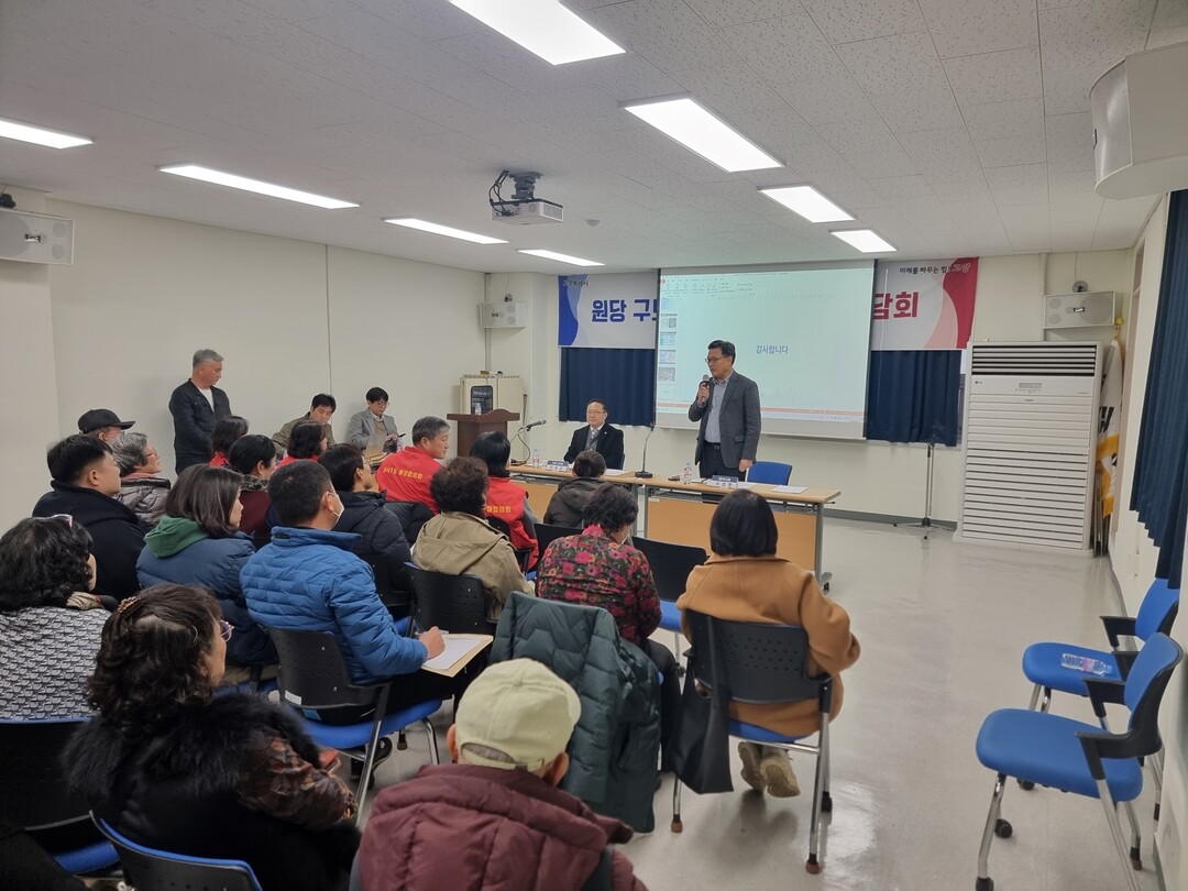 이날 안중돈 고양시의원과 이정형 제2부시장이 ▲원당6.7구역 주택 재개발 사업 현황 ▲도시 및 주거환경정비법 개정에 따른 향후 계획 ▲원당 구도심 정비를 위한 원당재창조 프로젝트의 필요성 ▲원당역세권 활성화를 위한 향후 계획 사항을 설명했다. 이어서 주민 질의 시간이 진행됐다.