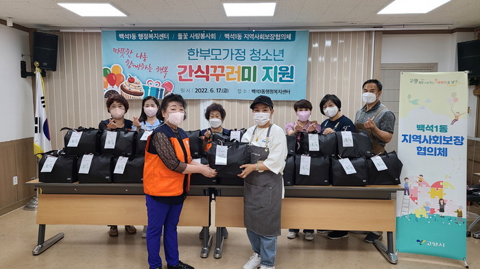 [부자동네타임즈 김인수기자] 고양시 백석1동 지역사회보장협의체(위원장 임흥순)는 관내 저소득 한부모 가정 청소년을 대상으로 따뜻한 마음이 담긴 ‘간식 꾸러미’ 나눔 행사를 실시했다고 20일 밝혔다.
