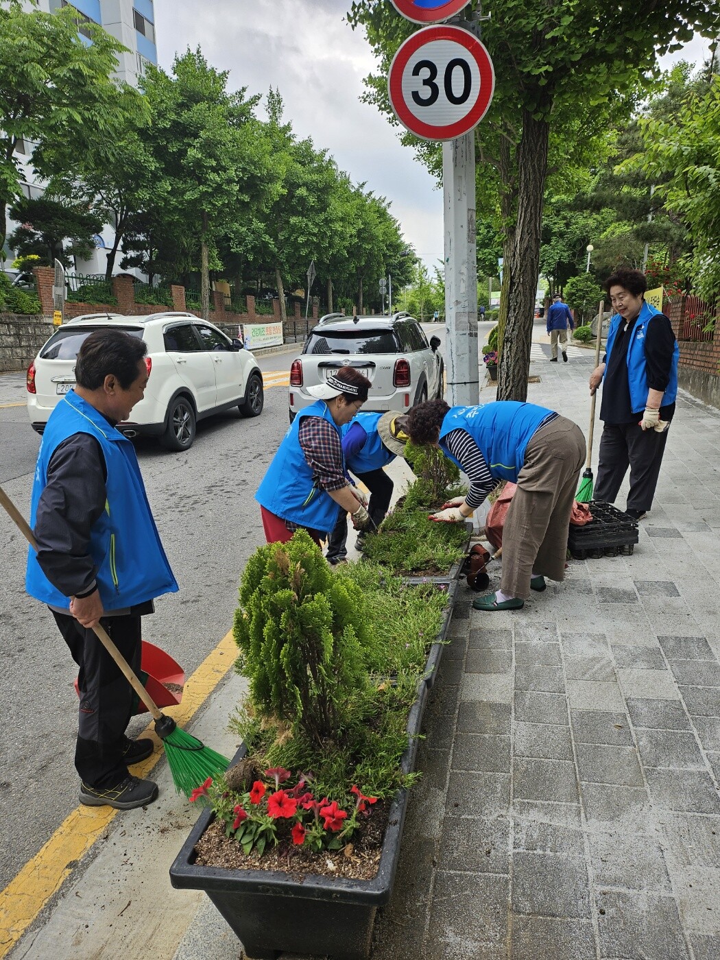 이날 활동에 참여한 주민자치회 위원들은 마을 곳곳의 화분과 화단에 꽃 잔디를 심고 주변 환경을 정비했다. 기존에 식재된 측백나무와 페튜니아에 꽃 잔디가 함께 어우러져 쾌적하고 아름다운 마을 분위기가 조성됐다.