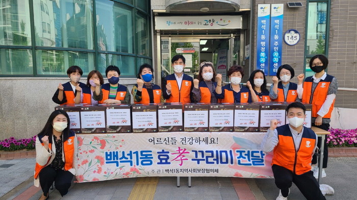임흥순 백석1동 지역사회복지협의체 위원장은 “코로나로 자식들도 자주 못 보고 답답한 일상을 보내셨을 어르신들이 작게나마 준비한 효 꾸러미로 나눔의 온기를 느끼셨으면 좋겠다”며 “늘 건강하시고 행복하게 지내시길 바란다”고 말했다.