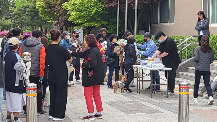 4월 17일부터 22일까지 일부 동물 병원에서 광견병 예방백신 무료 일제접종을 실시하였고, 이후 동물 병원 방문이 어려운 동 주민들의 편의와 접종률 향상을 위해 수의사와 동 직원들이 현장에 직접 출장하여 예방백신 접종을 실시했다.