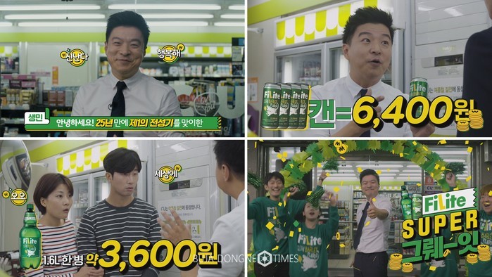 영상 속 김생민은 ▲주머니가 가볍지만 맥주로 하루의 피로를 날리고픈 사회초년생에겐 1만원으로 안주까지 해결할 수 있는 필라이트4캔(500mL) 솔루션을, ▲집들이, 홈파티 때는 가성비 최고의 1.6 L 페트 솔루션을 제시하고 ▲이미 필라이트를 구매한 현명한 소비자에게는 '슈퍼 그뤠잇' 칭찬을 아끼지 않는다.