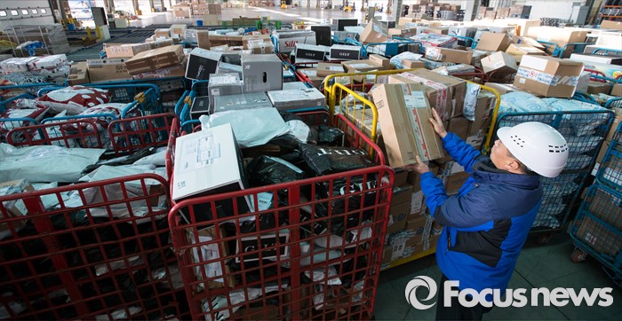 (인천공항=포커스뉴스) 7일 오전 인천공항 범한판토스 특송화물보세창고에서 직원들이 해외 직접구매로 배송된 블랙프라이데이 관련 물품들을 살펴보고 있다.
