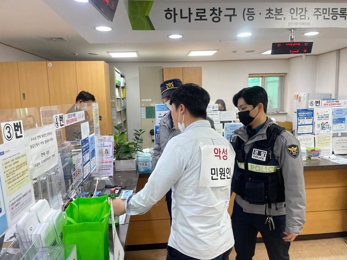 이번 훈련은 폭언·폭행 등 특이민원 관련 비상상황 발생 시 민원대응능력을 높이고, 민원처리 담당자와 다른 민원인들의 피해를 예방하기 위해 실제 발생할 수 있는 상황을 적용하여 추진됐다.
