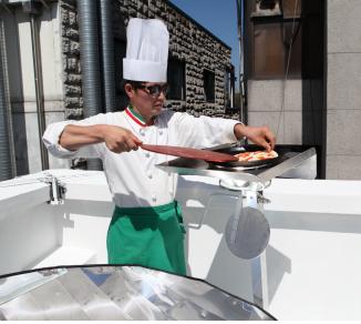 | △ 태양열 조리기를 이용한 음식 조리 장면. |