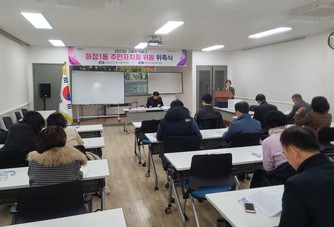 [부자동네타임즈 = 김인수 기자] 고양특례시 화정1동 주민자치회는 지난 14일 동행정복지센터 2층 문화사랑방에서 ‘2023년 화정1동 주민자치회 위촉식 및 정기회의’를 개최했다.