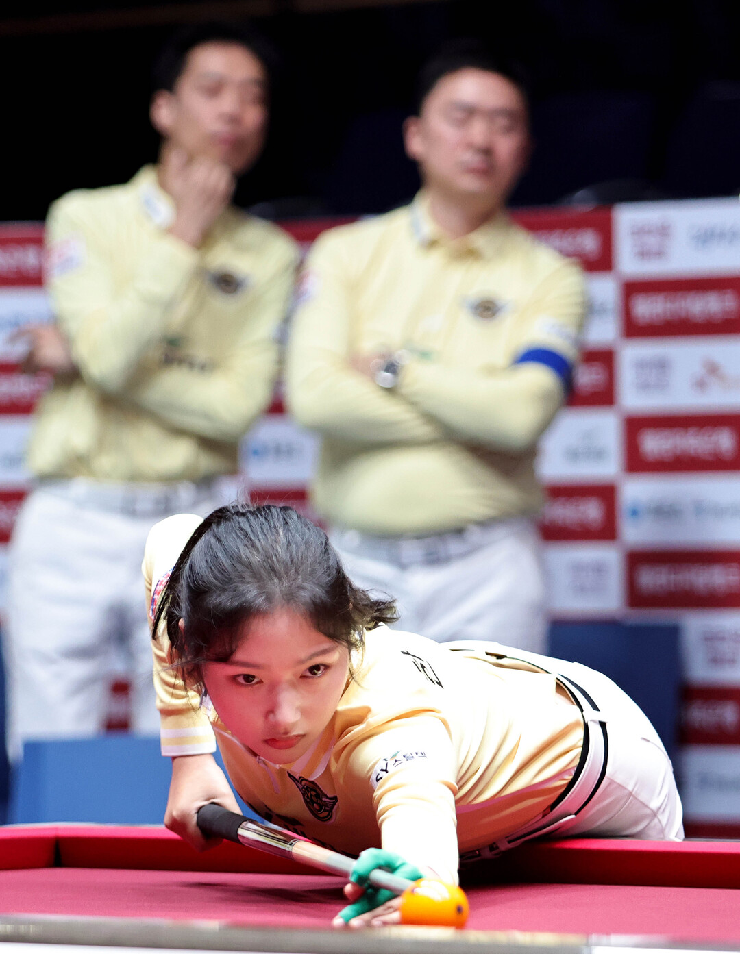패배를 앞둔 6세트에 한지은이 ‘당구여제’ 김가영을 상대했다. 한지은은 4이닝까지 무득점으로 부진했으나, 5이닝째 뱅크샷 3방을 포함한 8득점을 순식간에 뽑아내 리드를 잡았다. 퍼펙트큐를 위한 3뱅크샷을 시도했으나 무위에 그쳤고, 곧바로 다음 이닝서 남은 한 점을 채워 9:4로 승리했다. 기세를 이어 이영훈이 7세트서 김병호를 11:5(8이닝) 제압하고 경기를 세트스코어 4:3으로 마무리했다.