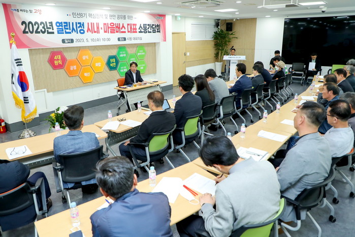 [부자동네타임즈 김인수기자] 10일 관내 시내·마을버스 대표 및 관계자가 참석한 가운데 고양시청 대회의실에서 ‘2023년 열린시정 시내·마을버스 대표 소통간담회’를 개최했다.
