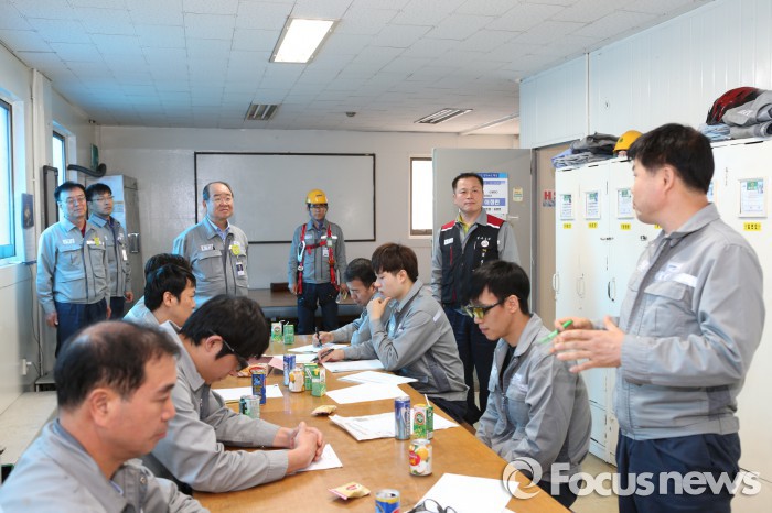 | △ 16일 오전 경남 거제 옥포조선소에서 열린 ‘노사합동 전사 대 토론회’에 참여 중인 대우조선해양 직원들 모습. <사진제공=대우조선해양> |
