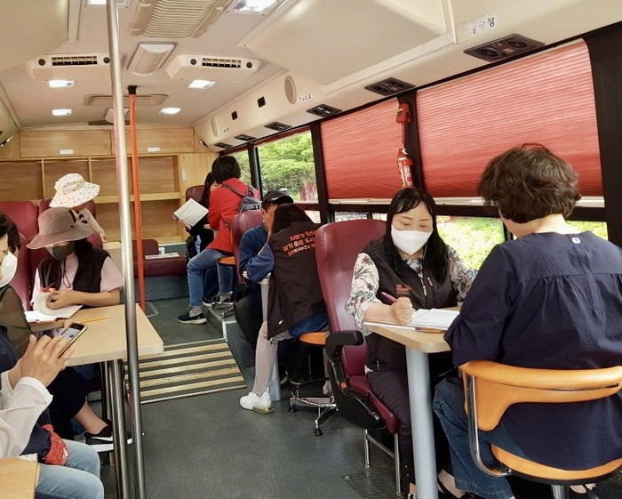 찾아가는 뇌블리버스는 버스 안에 치매선별검사와 상담 등이 가능하도록 공간이 구성되어 있어 지역주민들이 간단하고 편리하게 이용이 가능하다.