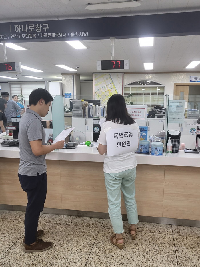 이날 훈련은 민원인이 폭언과 폭행을 실시하는 상황을 연출하여 매뉴얼에 따라 단계별로 대응하는 방식으로 진행했다.