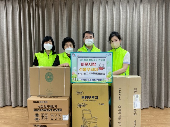 탄현1동 지역사회보장협의체 특화사업인 ‘이웃사랑 선물꾸러미’는 관내 저소득 노인과 장애인 가구 생활환경 개선에 필요한 물품을 제공해 삶의 질 향상을 도모하는 사업이다. 이번 행사는 평소 가정방문을 통해 생활물품 지원이 필요하다고 파악된 5명의 대상자를 선정해 전자레인지, 보행차, 선풍기 등을 전달했다.