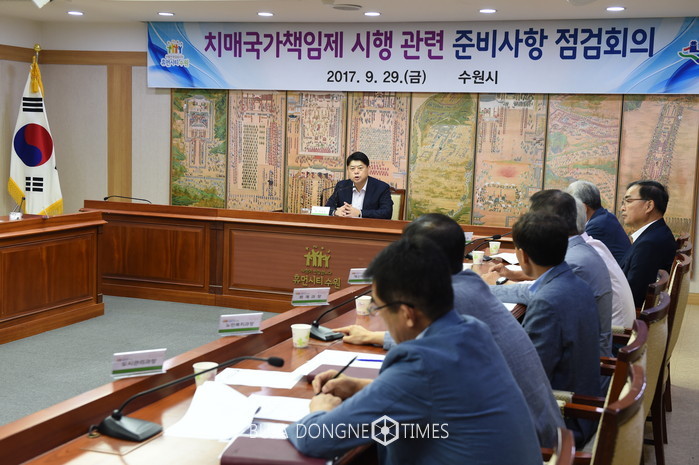 수원시는 지난 29일 시청 상황실에서 이한규 제1부시장 주재로 ‘치매국가책임제 시행 관련 준비사항 점검회의’를 열고, 치매안심센터 사업 추진상황을 점검했다.