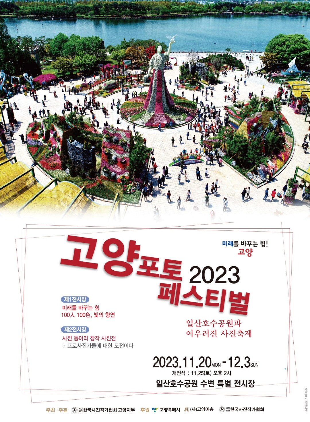 [부자동네타임즈 = 김인수 기자] ‘2023 고양 포토페스티벌’이 지난 20일부터 12월 3일까지 일산호수공원에서 ‘미래를 바꾸는 힘 100인 100색 빛의 향연’이라는 주제로 열린다.