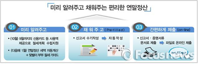 (서울=포커스뉴스) 정부가 근로소득자 모두에 해당되는 연말정산 결과를 미리 예상해볼 수 있는 서비스를 도입한다.
