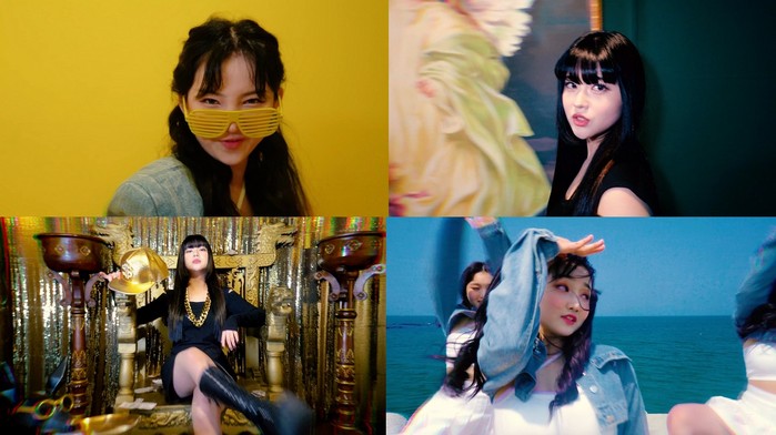먼저 민지는 다양한 색감의 세트를 배경으로 한층 시크한 표정과 명품 의상으로 한층 성숙해진 모습을 선보였으며 타카라는 금빛 가득한 세트와 소품으로 스웩 넘치는 타카라만의 매력을 뽐냈다.