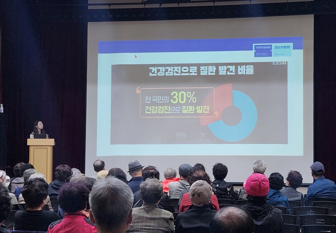 이날 문한빛 교수는 국가건강검진과 암 검진의 중요성을 강조하며 연령별 필수 검진 사항과 결과지 읽는 방법을 안내했다.