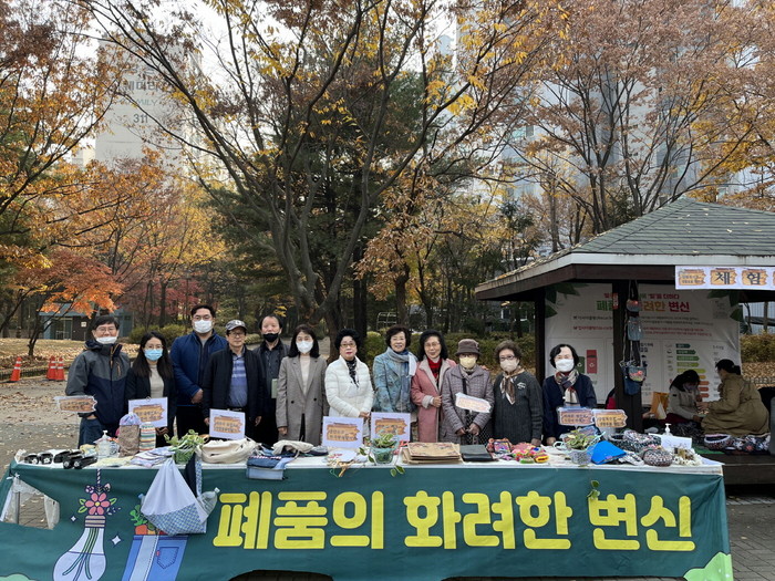 이번 전시회는 주민자치회에서 진행한‘업사이클링을 통한 친환경 만들기’사업을 진행하며 직접 만든 작품들을 공원에 전시하고 주민들에게 설명하는 시간을 가지는 시간이었다. 전시회를 통해 버려지는 물건을 새로운 제품으로 탄생시키는 업사이클링에 대한 설명을 하고, 한편에서는 양말목으로 생활용품 만들기 체험 등을 진행하며 자원 낭비를 막고 친환경 마을 만들기를 실천하는 자리였다.