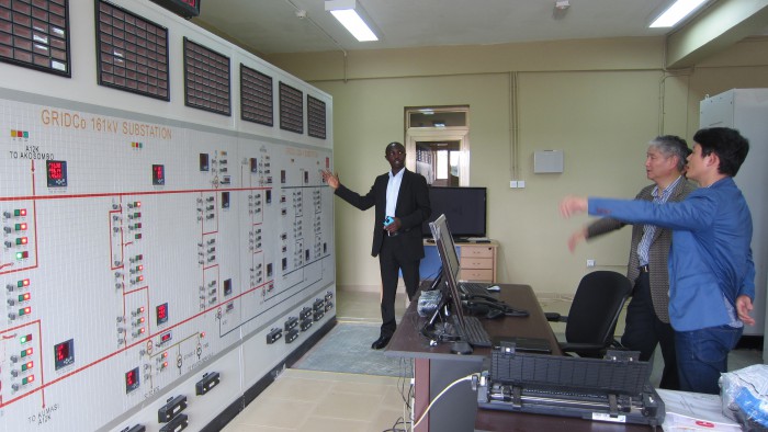| △ 아프리카 가나 현지에서 한국전력 직원이 전력설비 현황을 설명하는 모습.<사진제겅=한국전력> |