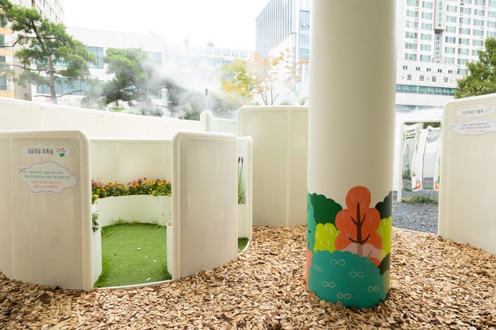 ‘안개-숲-놀이터’는 ‘물안개’라는 이색적인 소재를 주제로 아이들이 호기심과 상상력을 펼칠 수 있는 미로 탐험 공간이다.