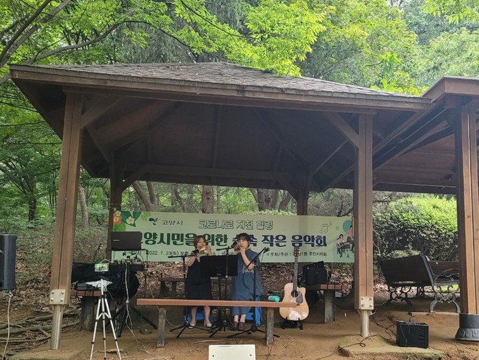 [부자동네타임즈 김인수기자] 고양특례시 화정1동 주민자치회(회장 권영선)가 지난 23일 오후 3시 성라공원 숲속 도서관에서 작은 음악회를 개최했다.