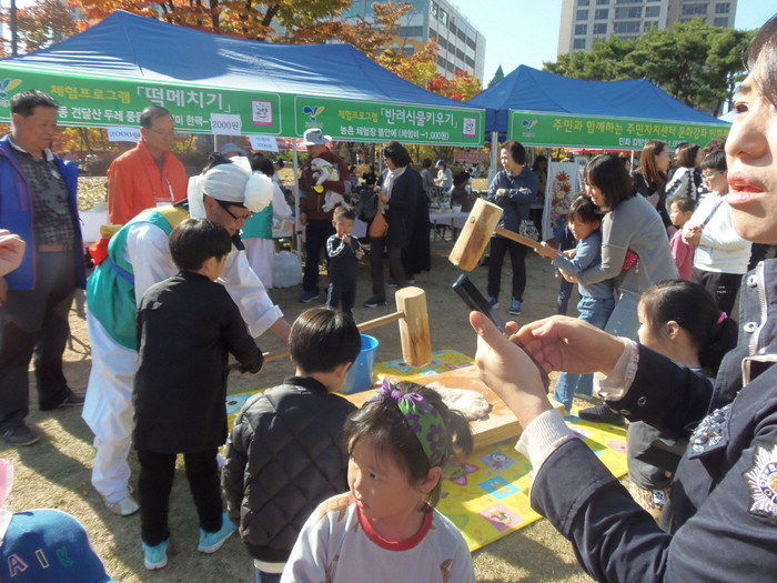 체험마당에서는 떡메체험, 비즈공예, 비누공예, 테라리움 만들기, 가훈쓰기 등을 체험할 수 있고, 나눔마당은 아나바다 절약 캠페인 일환으로 42개 팀을 선착순 접수 받아 주민이 저렴한 가격으로 중고물품을 거래하는 장터이다.