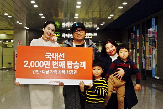 제주항공은 취항이후 10개월만인 △2007년 4월 국내선 누적탑승객 50만명 돌파 △2007년 11월 100만명 △2010년 12월 500만명을 넘어선 데 이어 △2013년 1월 1000만명을 돌파한 바 있다.