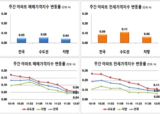 [부자동네타임즈 이채봉 기자] 전국 아파트 매매가격이 겨울철을 맞아 시장 관망세가 두드러지며 낮은 상승률을 보였다.
