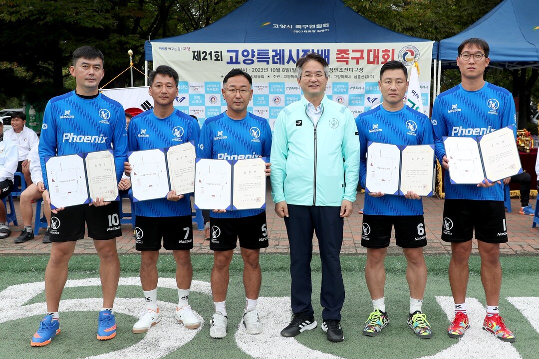 이날 이동환 고양특례시장은 지난달 열린 제34회 경기도 생활체육대축전 40대부에서 우승한 지승흔, 조덕상, 박수민, 백종영, 권우일 선수 등 5명에게 표창장을 수여하고 고양특례시의 이름을 빛낸 선수의 공로에 감사한 마음을 전했다.