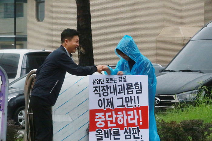 [사진설명] 오◯◯이 1인 시위를 응원하는 더블어민주당 이종덕 시의원.