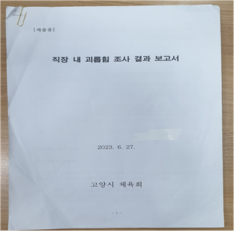 이 절규는 지난 6월1일 6명으로 시작된 신고가 14명으로 늘어나면서 사무국 직원들에 대한 직장 내 괴롭힘에 피해자들의 목소리다. 신고가 접수 되자마자 고양특례시체육회는 고충처리심의위원회(노무사2명)에서 자료를 검토한 후 “이 사항은 직장 내 괴롭힘이 분명하다”는 심의결과를 보고 받고 확정지었다.