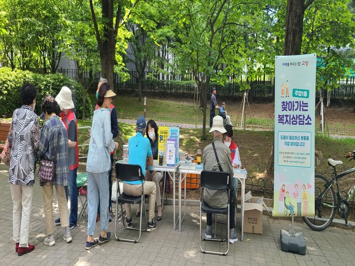 [부자동네타임즈 김인수기자] 고양특례시 주엽1동 행정복지센터는 일자리지원센터와 협력하여 지난 25일, 강선공원에서 복지사각지대 발굴을 위한‘찾아가는 복지상담소’를 운영했다.